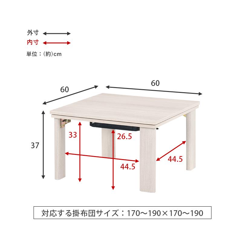 こたつ テーブル 正方形 一人用 スリム 木製 折りたたみ こたつテーブル ヒーター 60×60 おしゃれ リビング 座卓 リバーシブル ロー 省スペース ローテーブル
