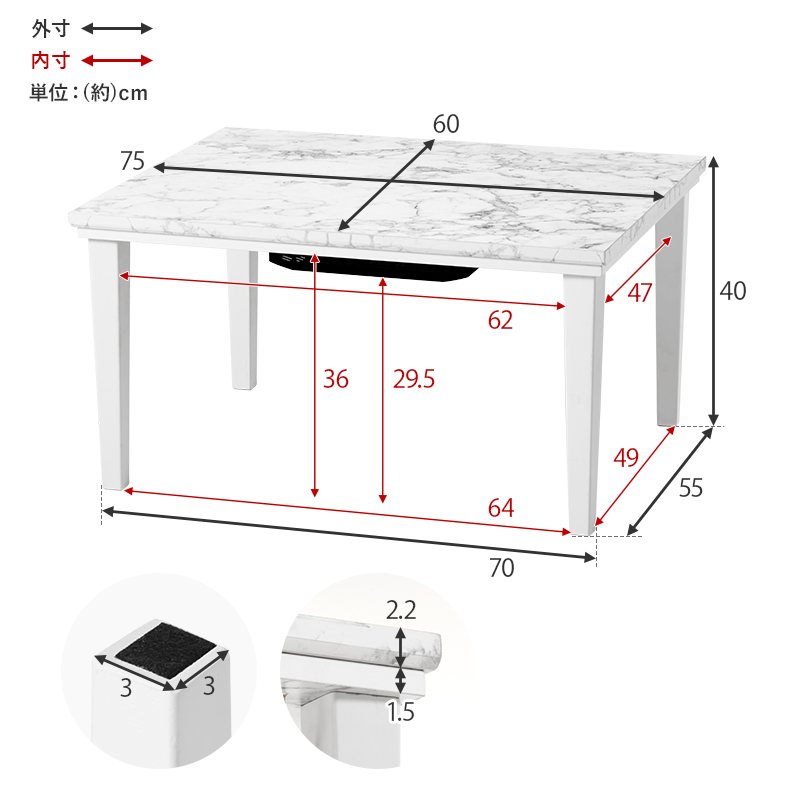 こたつ:(約)幅75×奥行60×高さ40cm