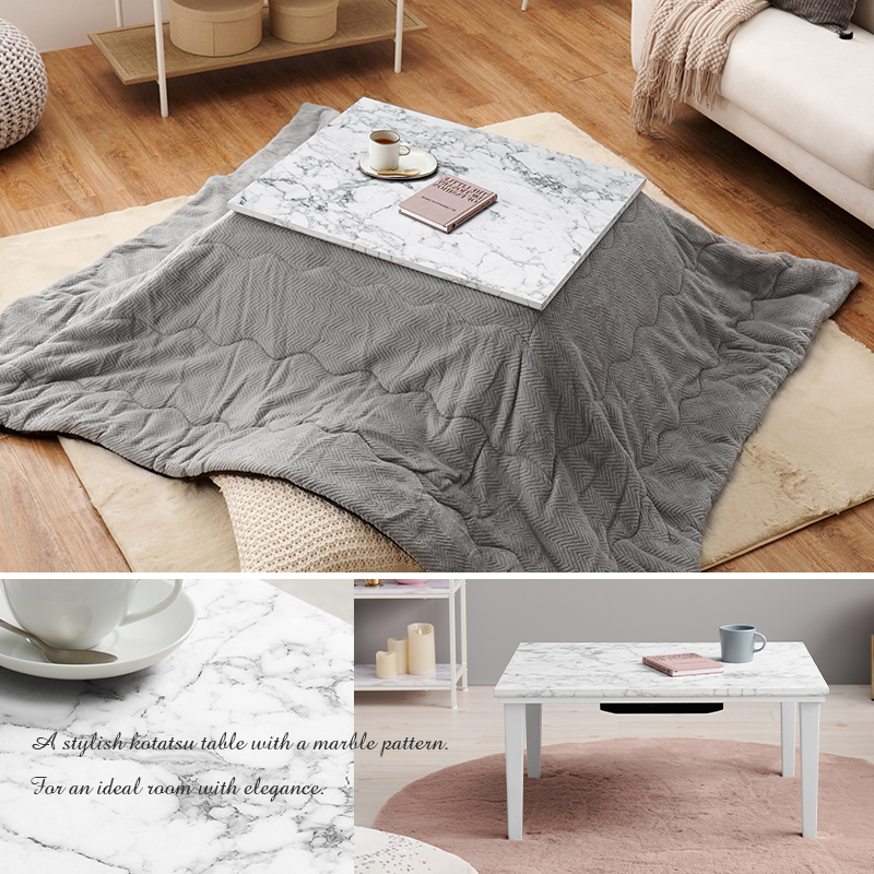 こたつセット 長方形 1人用 おしゃれ 75×60 大理石調 コタツセット 1人 こたつテーブル 掛け布団 一人暮らし 省スペース ヒーター テーブル
