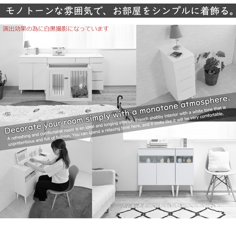 明るいホワイトカラーをベースに引出しと扉を使いやすい位置に配置したキャビネットシリーズ。
