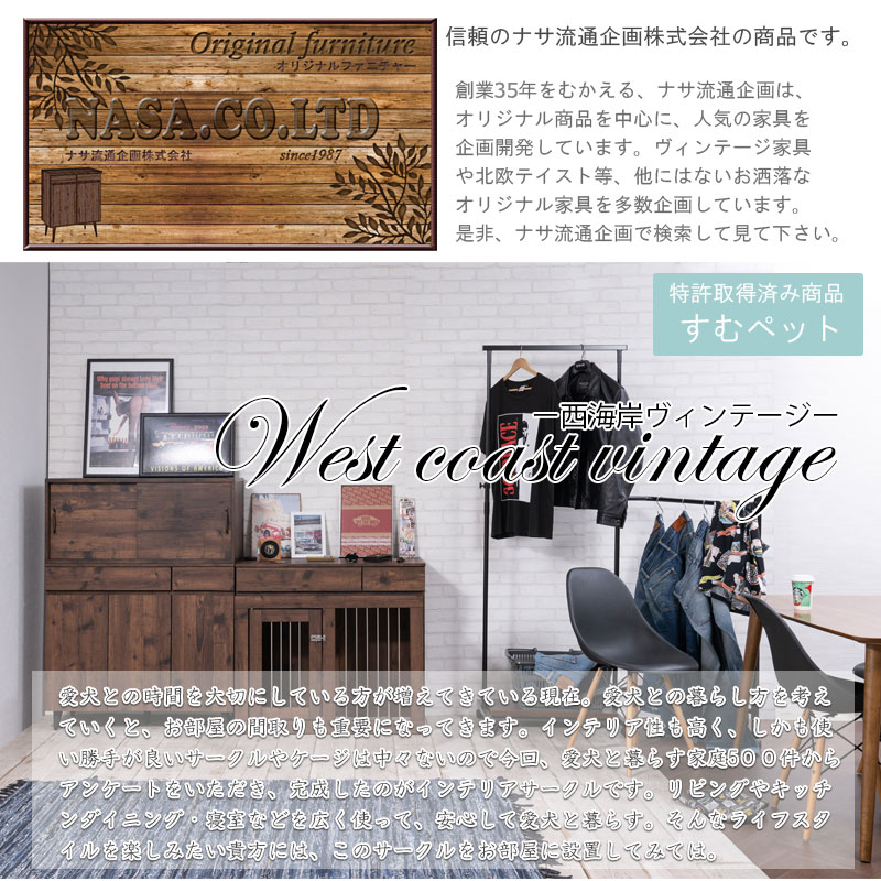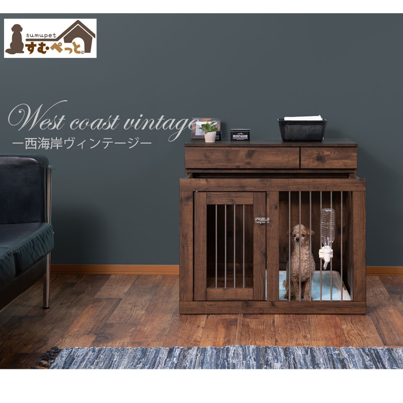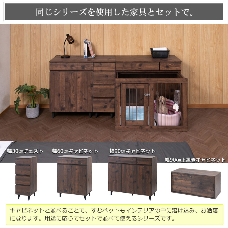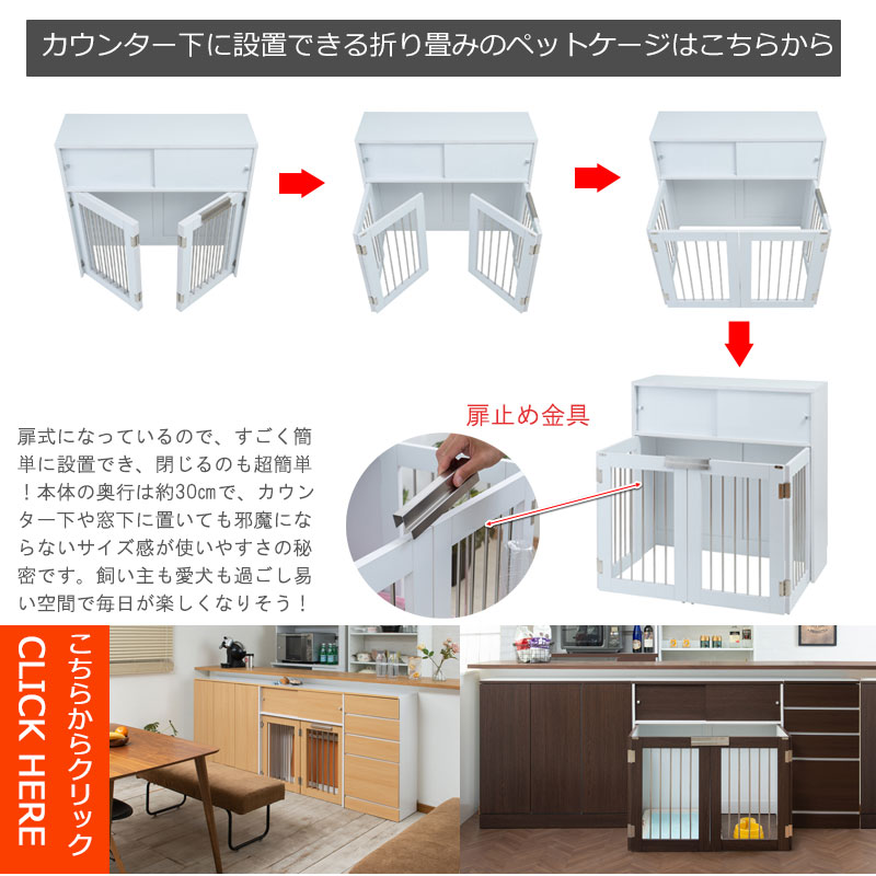 キャビネット おしゃれ 収納付きスライド式ケージ カウンター下収納 幅90cm ペットケージ ペットゲージ ペットサークル 室内サークル スライド 犬