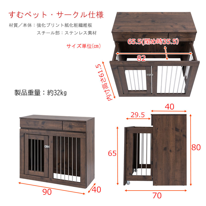 ケージ内寸:(約)幅82×奥行65.5(閉め時35.5)×高さ61.5cm