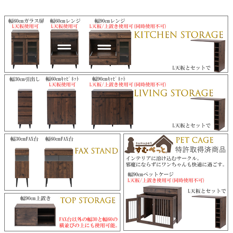 ヴィンテージ感漂う深みのあるブラウンをベースに、美脚効果で軽やかでスタイリッシュなデザインに仕上げたキッチンボード。
