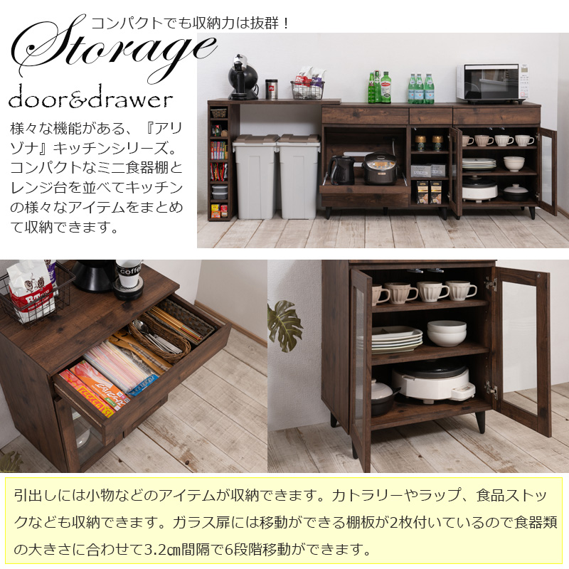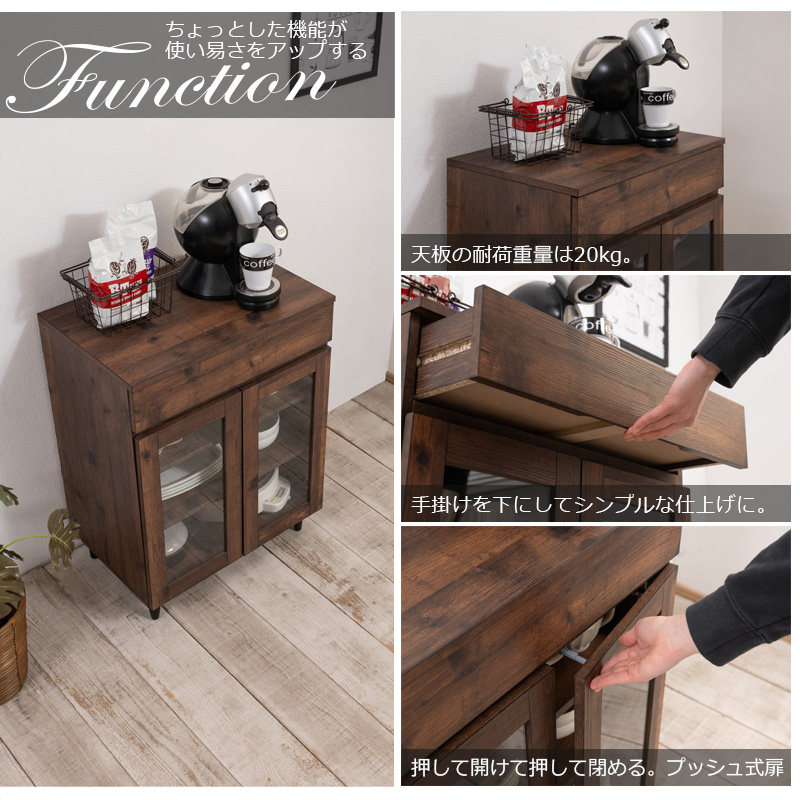 食器棚 幅60cm キッチンボード 引き出し おしゃれ 木製 ヴィンテージ ガラスキャビネット キッチン キッチン収納 コンパクト キャビネット 扉付き