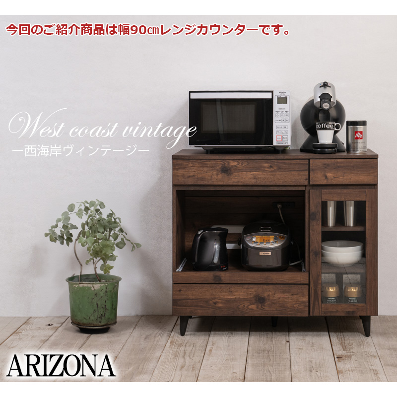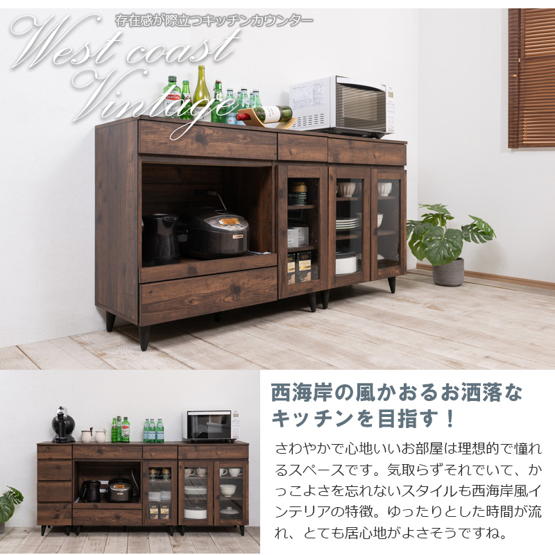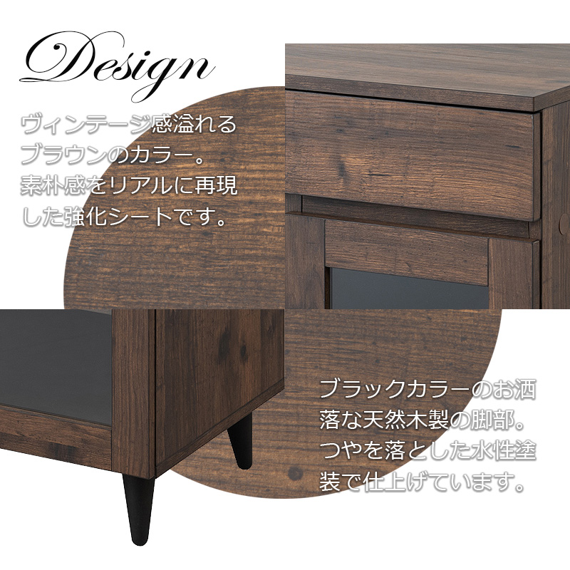 ヴィンテージ感漂う深みのあるブラウンをベースに、美脚効果で軽やかでスタイリッシュなデザインに仕上げたレンジカウンター。