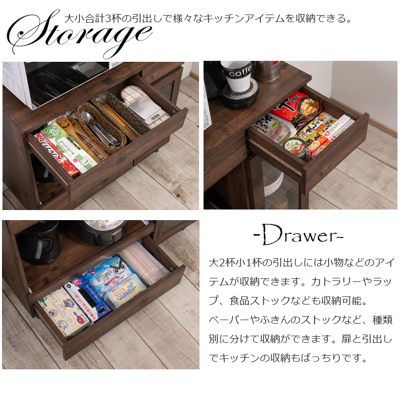 食器棚 幅90cm キッチンボード 引き出し おしゃれ 木製 ヴィンテージ ガラスキャビネット キッチン キッチン収納 コンパクト キャビネット 扉付き