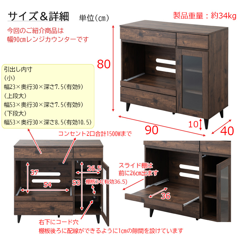 スライド棚内寸:(約)幅54(空間幅56.5)×奥行36×高さ35.5(有効37)cm