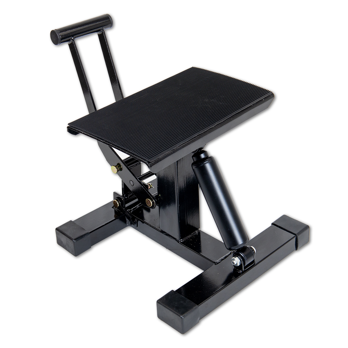 車体下にスタンドを差込んでハンドル部を足で踏むだけで簡単に車両を持ち上げることができます。