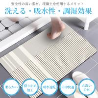 | 商品説明 | 天然珪藻土で吸水性と速乾性に優れたソフトバスマット ●吸水性・速乾性・滑り止め ●自由カット・収納便利 ●冷たくない・良い踏み心地 ●防カビ・洗濯可 |