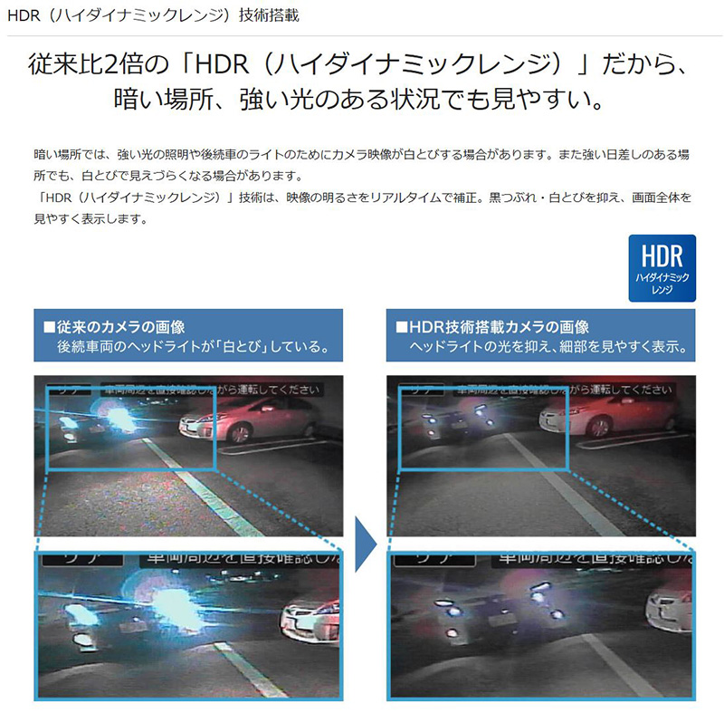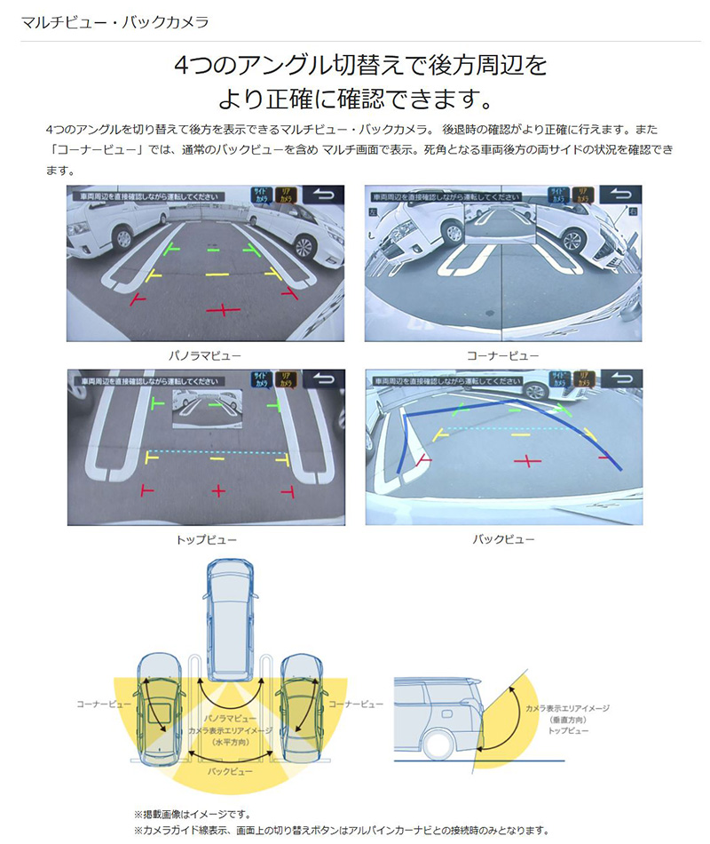 カメラは多様なシーンで安全を確認できるアングル切替が可能。本体色はブラック。