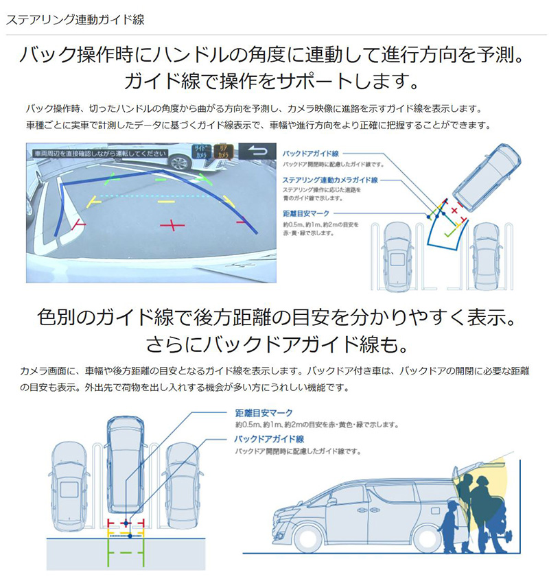 後方の映像をナビ画面へ表示し、クルマの操作を快適にサポート。