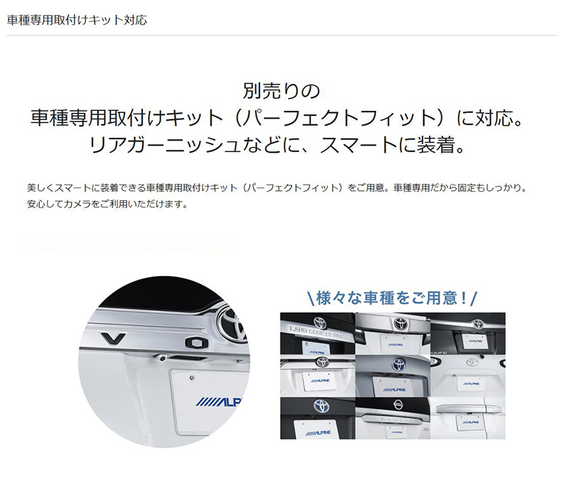 車種専用取付けキット(パーフェクトフィット)は別売となります。