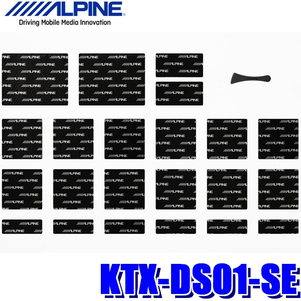 比重1.7、アルミニウムとブチルゴムを組み合わせた制振シートを採用。フロントドア左右に必要な枚数がワンパッケージになっているだけでなく必要箇所に合わせて最適な大きさにカット済み。専用のへらも付属、ドアのバラし方から「どれをどこに貼る」のかもわかりやすく図解されているため確実に取り付けることができ、アルパインが意図したとおりの効果を実感することができます。