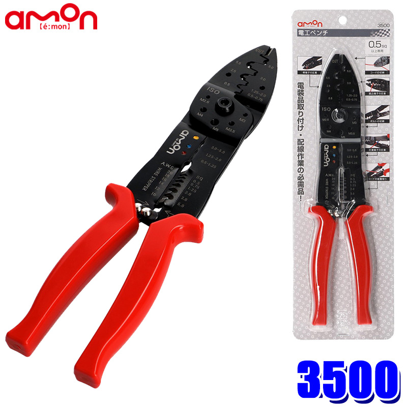 【メール便対応可】3500 エーモン工業 電工ペンチ 0.5sq以上専用 サイズ:全長約255mm