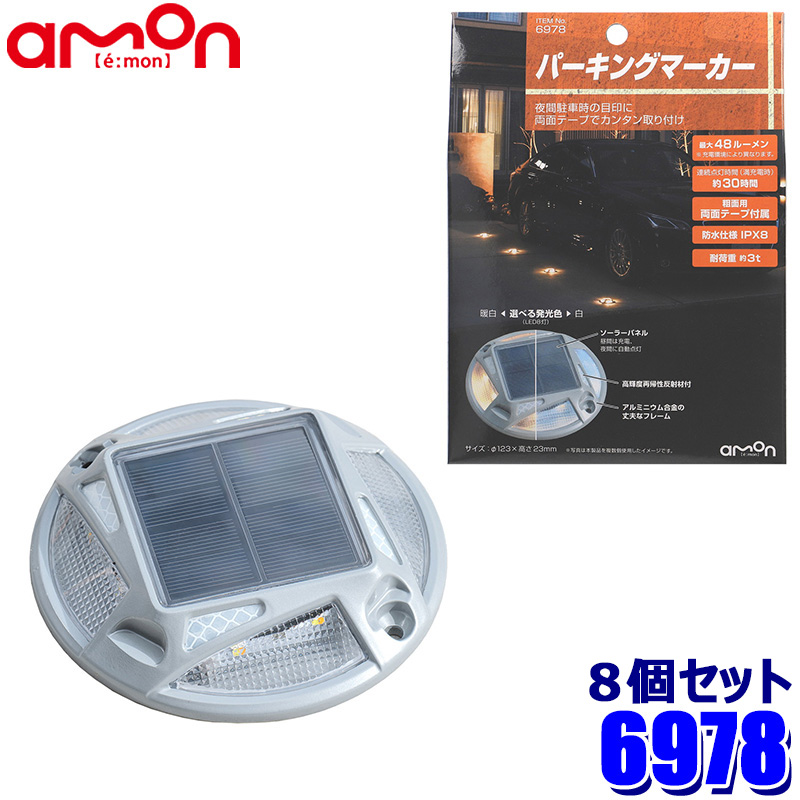 夜間駐車時の目印に。粗面用両面テープでコンクリートにもカンタン取り付け!ソーラーパネル式で夜間に自動点灯します。
