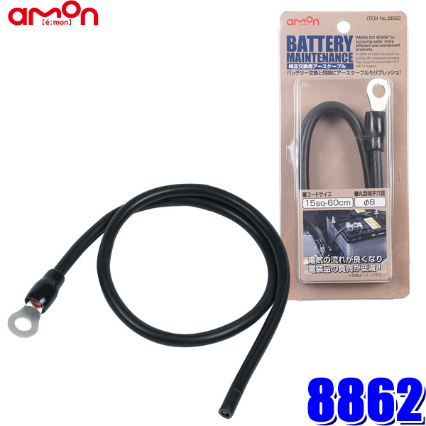 【メール便対応可】8862 エーモン amon 純正交換用アースケーブル 15sq-60cm