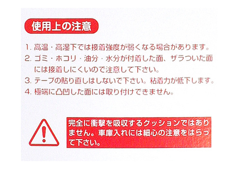 | ◆車庫入れ安心!ガレージ内でのドア開閉による小傷対策に ◆車のボディ・ドアの保護に ◆曲面部分にもフィットする ◆軽量でクッション性のある発泡素材を使用 ◆曲面・コーナーになじみやすいカット加工 ◆必要なサイズにカットして使用できます 【仕様】 ・サイズ:200×450mm 厚さ10mm ・材質 本体:発泡ポリエチレン 粘着剤:アクリル系粘着剤 【内容物】 ・ガレージクッション(テープ付)×1 ※画像はイメージです。実際の商品とは異なる場合がございます。 ※パッケージにつきましては、メーカーの仕様変更等により予告なく変更になる場合がございます。パッケージの違いによる返品・交換は承っておりませんので予めご了承ください。 | |