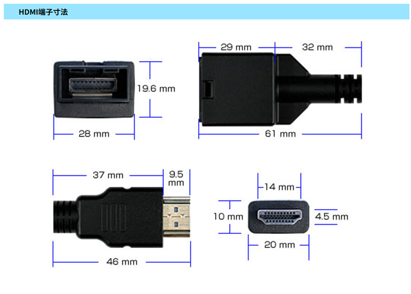 HDMIコネクター タイプEの機器とHDMIコネクター タイプA機器を接続するための変換ハーネスです。