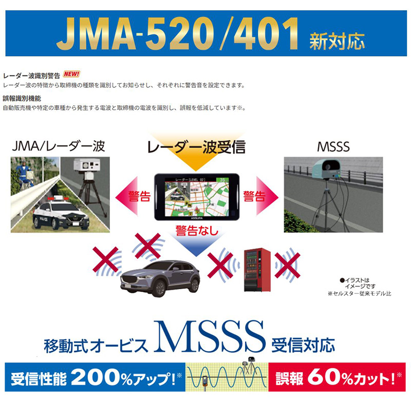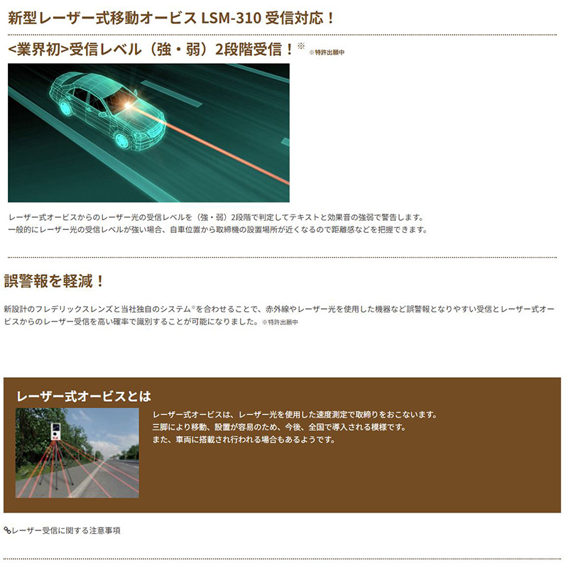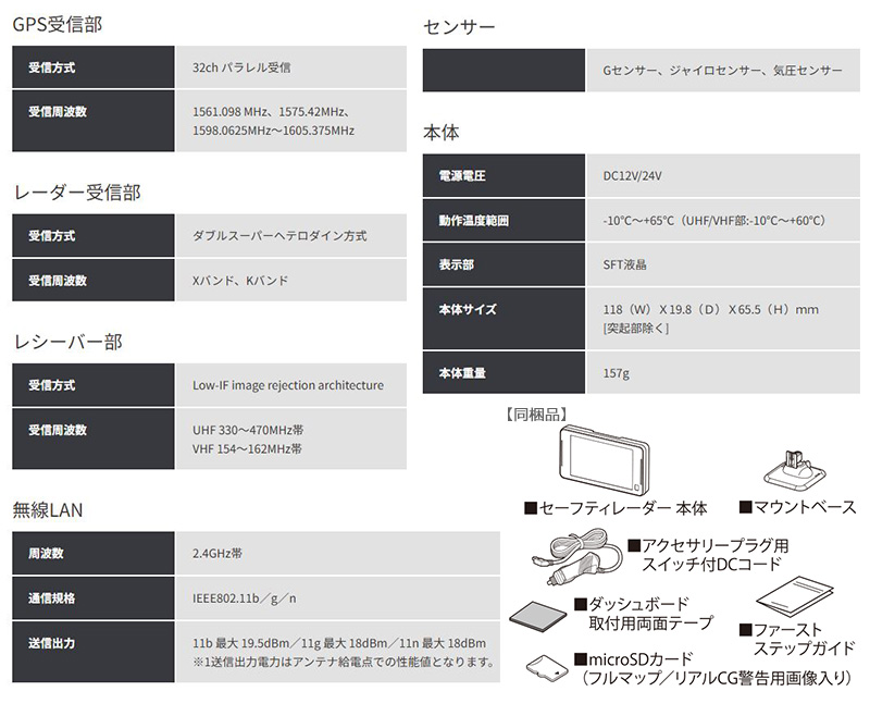レーザー式オービス、移動式オービスMSSS受信対応!ドラレコとの相互通信対応。別売アダプターにてOBDIIにも対応。12/24V車対応/超速GPS搭載/18バンド受信/3年保証。