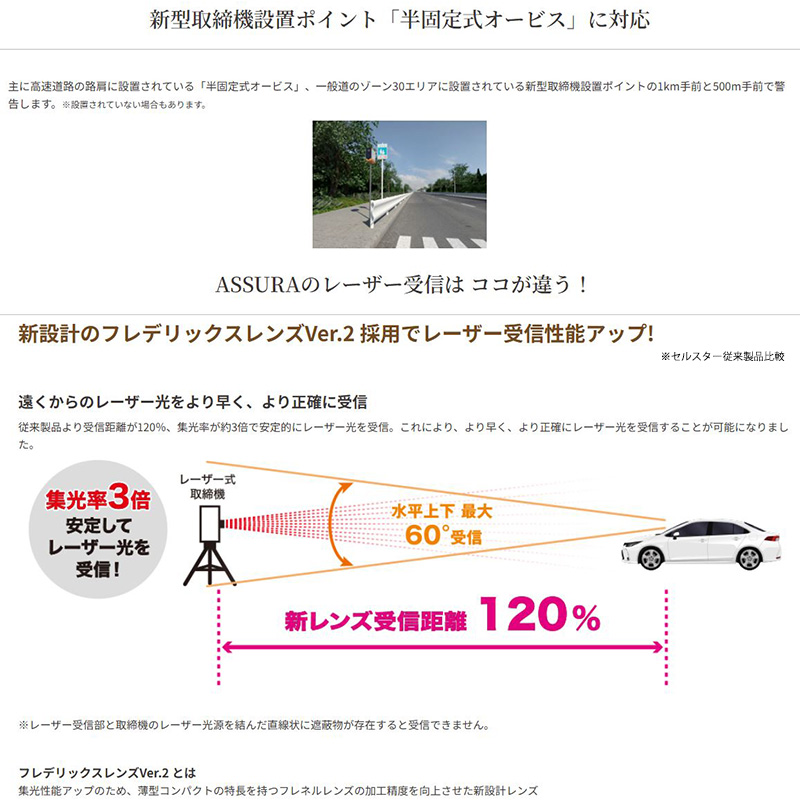AR-925AW cellstar セルスター ASSURA アシュラ セーフティレーダー ワンボディタイプ(一体型) レーザー式オービス対応レーダー探知機