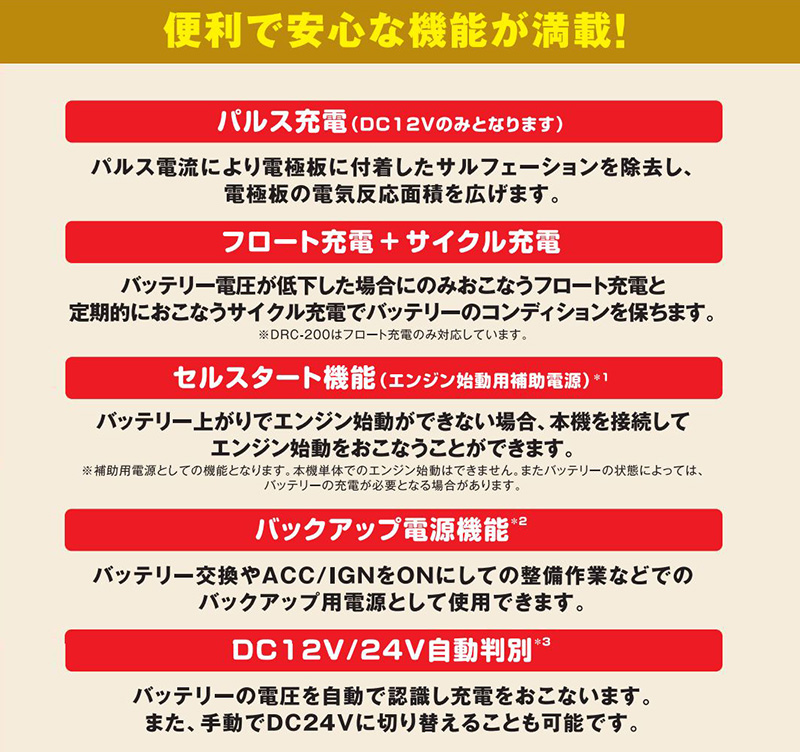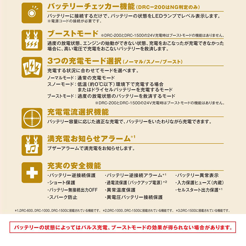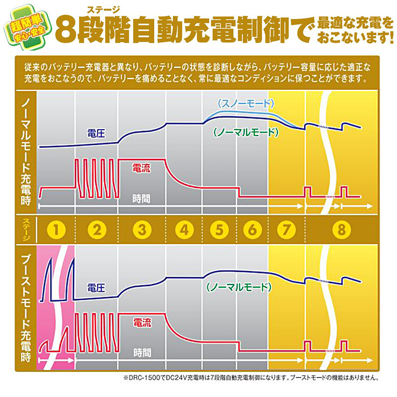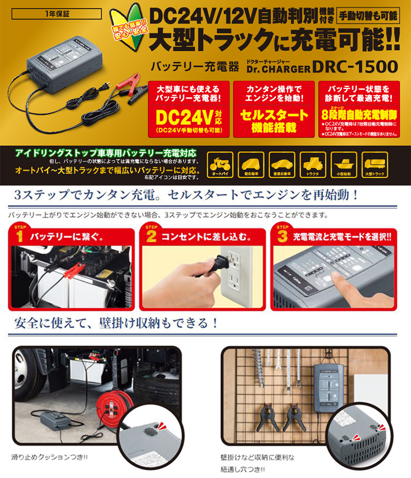 DRC-1500 cellstar セルスター Dr.Charger ドクターチャージャー DRCシリーズ バッテリー充電器 DC24V/12V兼用 パルス充電 自動車/オートバイ/大型トラック対応