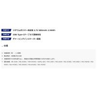 ジェントスのヘッドライト/ワークライト用、繰り返し使えるリチウムポリマー充電池。充電状況を色でお知らせ。
