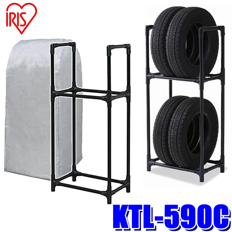 車庫や物置でタイヤをスマートに収納できる組立簡単なタイヤラック。紫外線による劣化や、雨やほこりなどによる汚れを防止するカバー付。