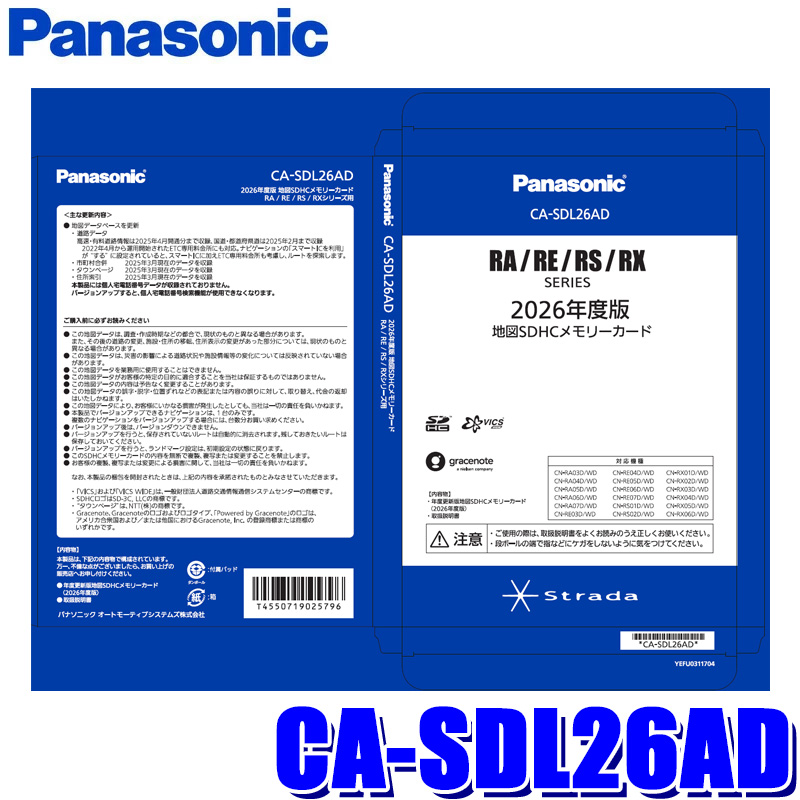 2025年12月発売(2026年度版)地図更新SD。ストラーダカーナビ RA/RE/RS/RXシリーズ用。