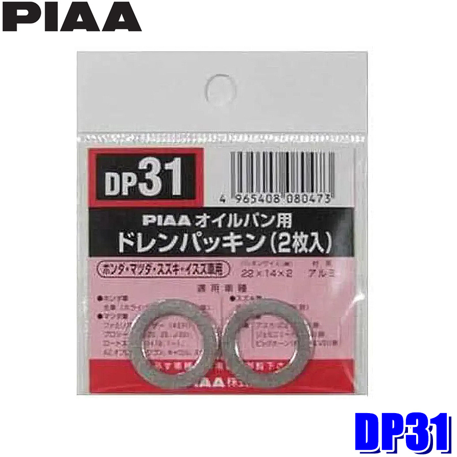 【メール便対応可】DP31 PIAA ピア オイルパン用ドレンパッキン 2枚入 パッキンサイズ22×14×2mm ホンダ/マツダ/スズキ/いすゞ車用