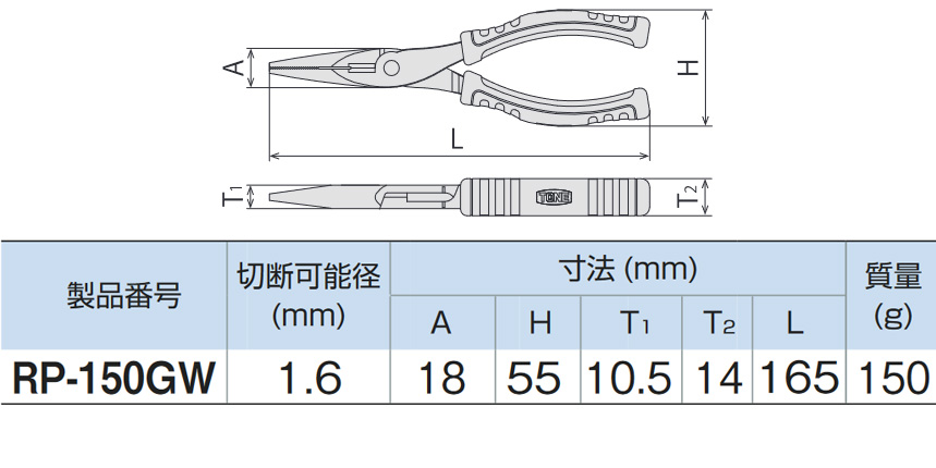 RP-150GW TONE トネ スベランシリーズ スベランラジオペンチ