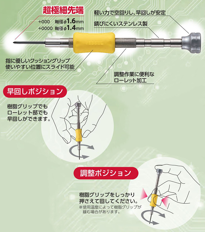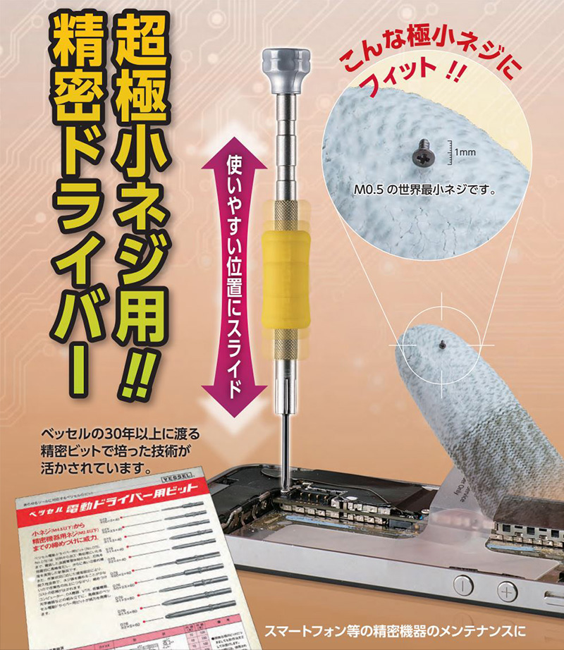 早回しもできる超極小ネジ用ドライバー。携帯に便利なクリアケース入り。