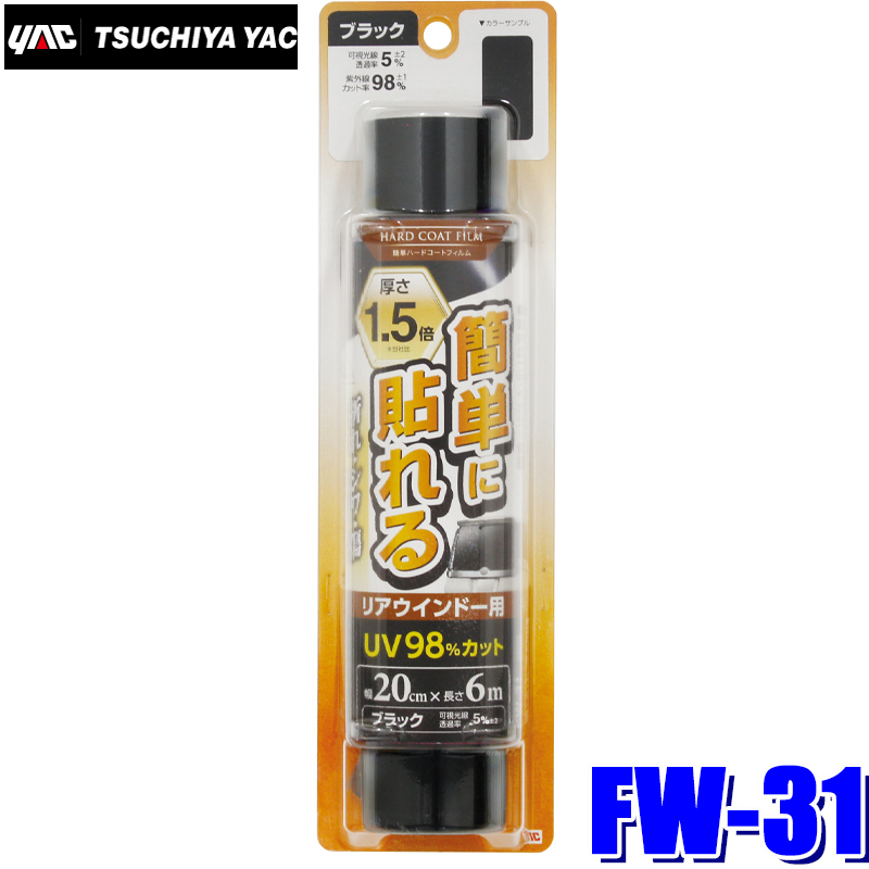 FW-31 YAC 槌屋ヤック ウィンドウフィルム 簡単ハードコートフィルム ブラック 200mm×6m巻リアガラス用 FW31