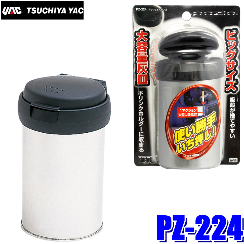 PZ-224 YAC PAZIO 槌屋ヤック 車載用灰皿 アッシュボトルL・2 シルバー/ブラック PZ224