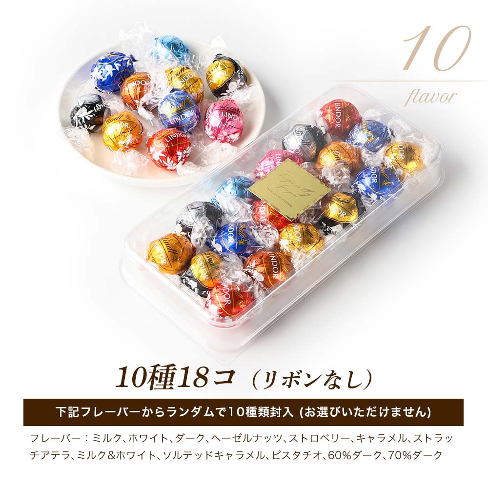 【10種18個】 下記フレーバからランダムで10種類封入(お選びいただけません) ・ミルク ・ホワイト ・ダーク ・ヘーゼルナッツ ・ストロベリー&クリーム ・キャラメル ・ストラッチアテラ ・ミルク&ホワイト ・ソルテッドキャラメル ・ピスタチオ ・60%ダーク ・70%ダーク