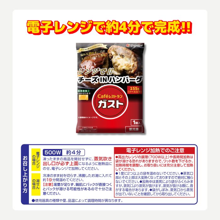 ●商品内容ガスト チーズインハンバーグ(155gソース入り)×20