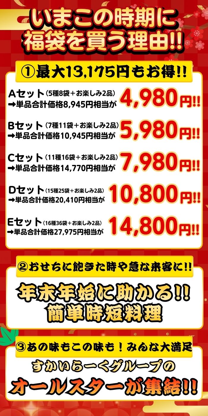 ●商品内容すかいらーく 新春大吉福袋(最大16種36袋)◇Aセット(5種8袋)+お楽しみ商品2品