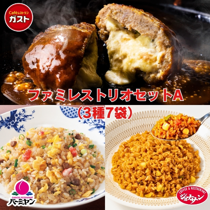 ガストで大人気のチーズINハンバーグとバーミヤンの本格炒飯&メキシカンピラフをセットにしました!