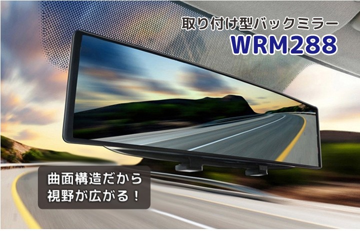 ルームミラーに挟むだけ 簡単取付 30cm 大鏡面バックミラー 曲面構造 後方左右まで見やすい 大型バックミラー 視野拡大 眩しさカット ワイドバックミラー WRM288