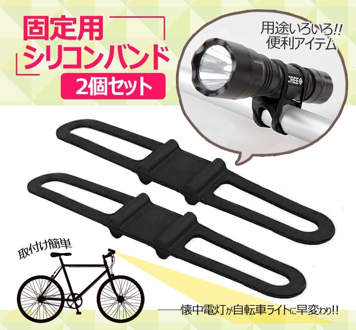 固定用シリコンバンド2個セット 懐中電灯を自転車用ライトに ホルダー アウトドア サイクリング 便利グッズ GM3580