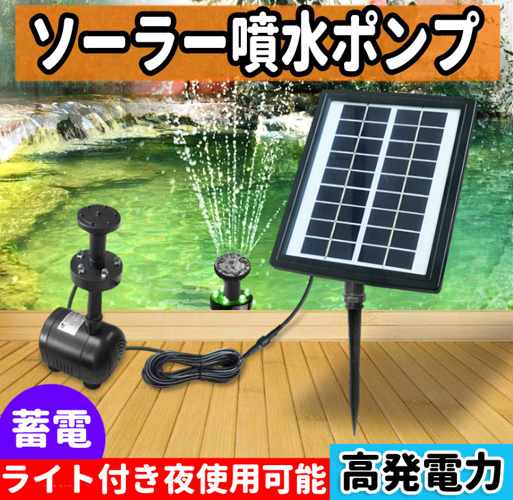 ソーラー噴水ポンプ LEDライト付き 池ポンプ 噴水ポンプ ソーラーパネル発電ポンプ 太陽光発電 蓄電 池 庭 ガーデン用に 夜間点灯 SDBL280