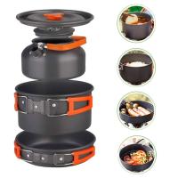 アルミクッカーセット ケトル 収納袋付き 取っ手付きアルミ鍋 コーティング加工 高伝導率 アウトドア調理 やかん クッキングクッカー フライパン セット CPHK310