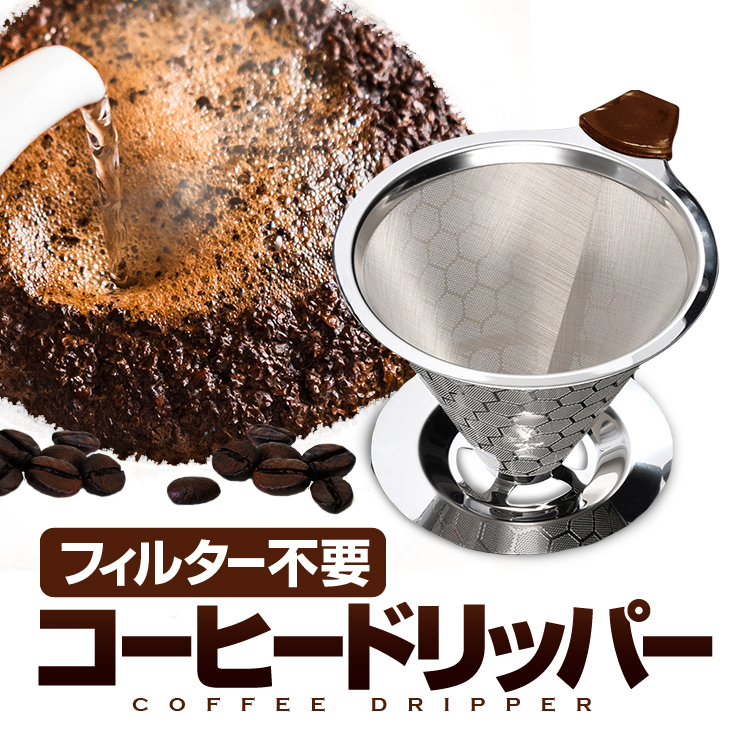 ペーパーフィルター不要 コーヒードリッパー ステンレス コクのあるコーヒー ハニカム構造 耐熱 耐腐食 耐久 1-3杯用 二重メッシュ構造 お手入れ簡単 DPCF115