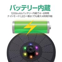 1200mAhバッテリー内蔵で4〜6時間、ナイトモード(LED+噴水)でも最大4時間作動