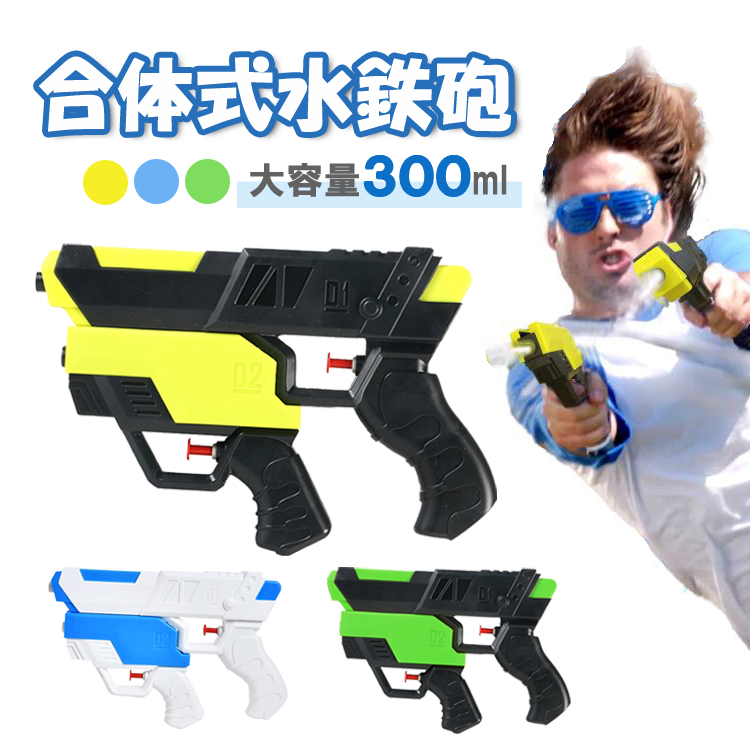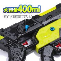 大容量、2本約最大300mlの水を入れることができます。 大きい水鉄砲のほうは約200mlで、およそ200回の発射が可能です。