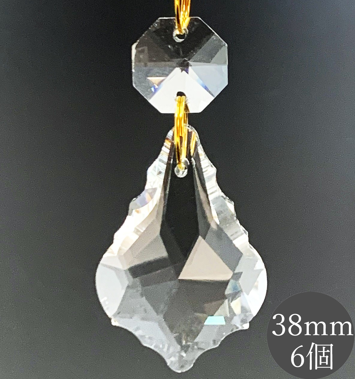 リーフカット 38mm 透明 6個セット 14mm八角 ビーズ 付き ドロップ クリスタル サンキャッチャー シャンデリア パーツ 吊り下げ 装飾用 DIY
