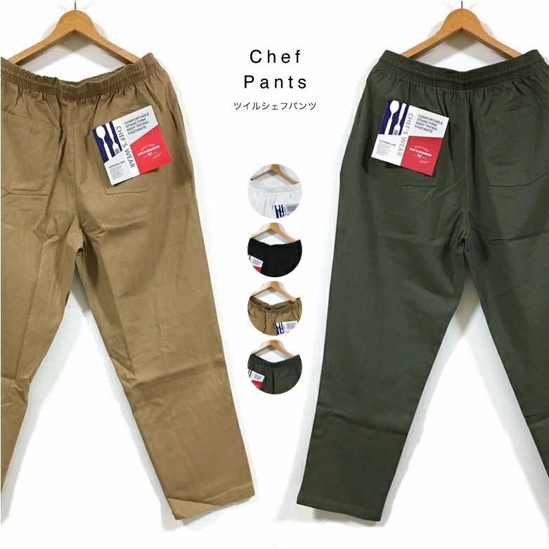 シェフパンツ コットンツイル 4ポケット 無地 メンズ 【 送料無料 】 シェフ クック コックパンツ ワイドパンツ イージーパンツ ジョブパンツ ストリート系 カジュアル モードストリート ワーク 作業着 ファッション ボトム 白 黒 ベージュ カーキ M L XL