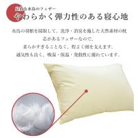 | ご注意 | 羽毛は天然素材なので、羽根独特の臭いがございますが、商品不良ではございません。 羽毛の臭いが気になる場合は、ゆっくり枕を押して空気の入れ替えを行い、日陰干しをしていただくと臭いが軽減されます。 (スプレータイプの消臭剤のご使用はお勧めできません。) 天然の水鳥を使用しているので、一部グレーがかったフェザーが入る場合がございます。 予めご了承くださいませ。 |
