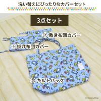 | サイズ | 【カバー】 掛け布団カバー:約83×113cm 敷き布団カバー:約73×123cm 【キルトバッグ】 約幅73×高さ51×マチ25cm |