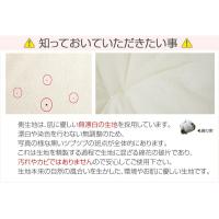 | ご注意 | 布団乾燥機のご使用はお避け下さい 側生地は、肌に優しい無漂白の生地を採用しています。 漂白や染色を行わない無調整のため、黒いツブツブの斑点が全体的にあります。 これは生地を精製する過程で生地に混ざる綿花の破片であり、汚れやカビではありませんので安心してご使用下さい。 |