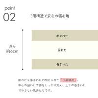 | サイズ | 約70×120×6cm ・三つ折り時:約70×40×19cm ・二つ折り時:約70×60×13cm 約70×150×6cm ・三つ折り時:約70×50×19cm ・二つ折り時:約70×75×13cm 約70×180×6cm ・三つ折り時:約70×60×19cm ・二つ折り時:約70×90×13cm (キルティング製品許容範囲+5%-3%) |